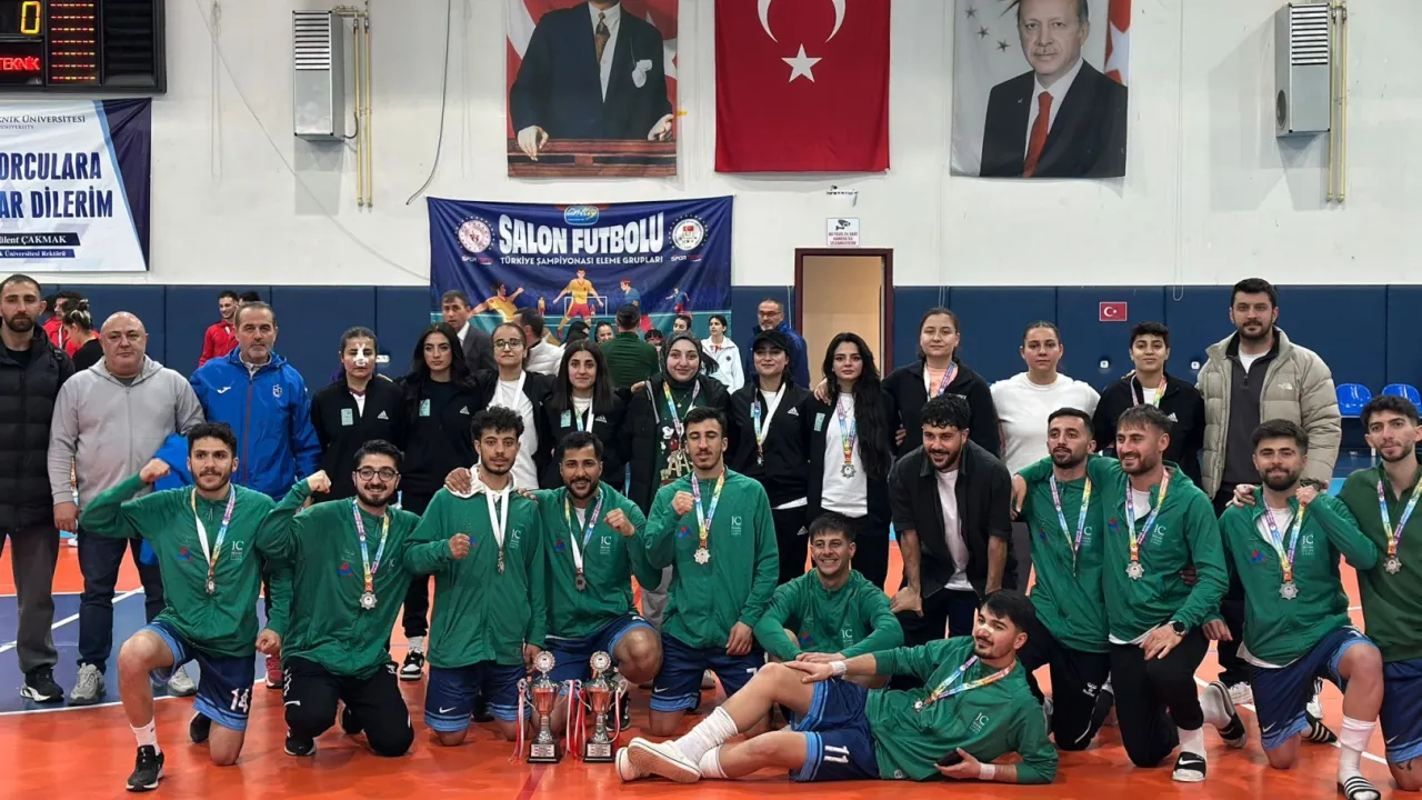 Nihat AYDIN / AĞRI (İGFA) - Türkiye genelinden üniversitelerin katılımıyla gerçekleştirilen turnuvada mücadele eden Ağrı temsilcisi Ağrı İbrahim Çeçen Üniversitesi kadın ve erkek futsal takımları, hem kadın hem de erkek kategorilerinde sergilediği performansla dikkat çekti. Turnuva boyunca disiplinli oyun anlayışı ve güçlü takım uyumuyla ön plana çıkan ekipler, zorlu rakiplerini geride bırakarak final aşamasına kadar yükseldi.