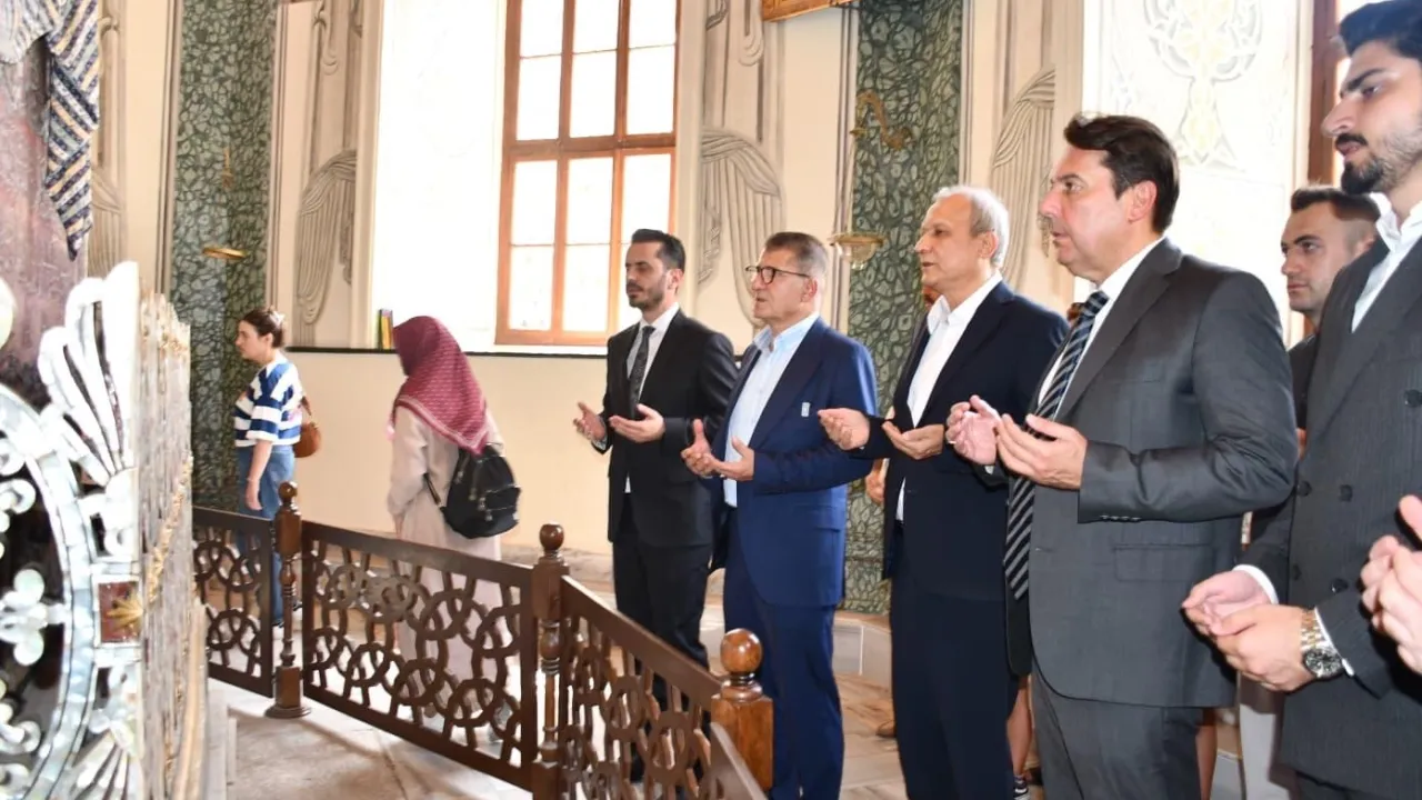 AK Parti Genel Merkez MKYK Üyesi Ömer Serdar, Türkiye Yüzyılı Buluşmaları programı kapsamında Osmangazi İlçe Başkanlığını ziyaret etti. İlçe Başkanı Adnan Kurtuluş ve teşkilat mensuplarıyla bir araya gelen Serdar, bu kapsamda cami, türbe, esnaf ve dernek ziyaretlerinde de bulundu.BURSA (İGFA) - AK Parti Genel Merkez MKYK Üyesi Ömer Serdar'ın Bursa programı Şehadet Camii’nde kılınan namazın ardından Orhan Gazi ve Osman Gazi türbelerinde yapılan dualarla başladı. Daha sonra Osmangazi esnafı ziyaret edilerek vatandaşlarla sohbet edilirken, engelli Simay Vardar da evinde ziyaret edildi. Sosyal medya üzerinden Bursaspor maçına gitmek istediğini dile getiren Simay’a, İlçe Başkanı Adnan Kurtuluş ve MKYK Üyesi Ömer Serdar tarafından Bursaspor kombinesi hediye edildi.