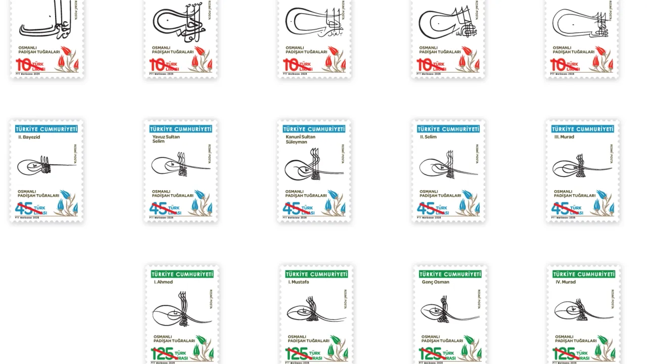 PTT AŞ tarafından 'Osmanlı Padişah Tuğraları' konulu resmi posta pulları 3 Mart 2026 tarihinde tedavüle sunuldu.